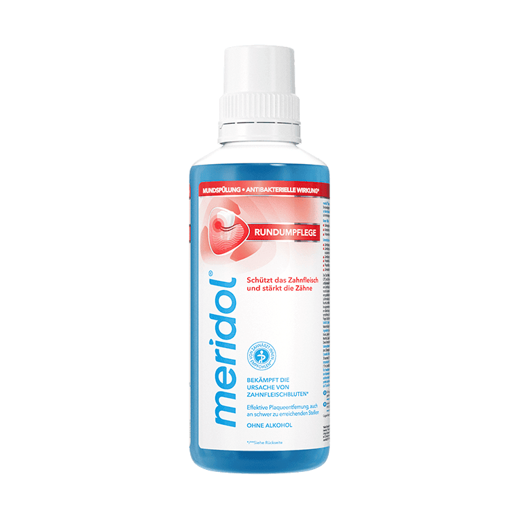 Schützen Sie Ihr Zahnfleisch und stärken Sie Ihre Zähne mit der meridol Rundumpflege Mundspülung. Diese Mundwasserspülung wurde speziell entwickelt, um die Ursache* von Zahnfleischbluten und Entzündungen zu bekämpfen und zu behandeln. Die Mundspülung schützt auch Ihr Zahnfleisch und stärkt Ihre Zähne, während ihre effektive, duale Wirkformel eine langanhaltende antibakterielle Wirkung* bietet. Sie bietet Kariesschutz, einen frischen Atem und stärkt den Zahnschmelz.