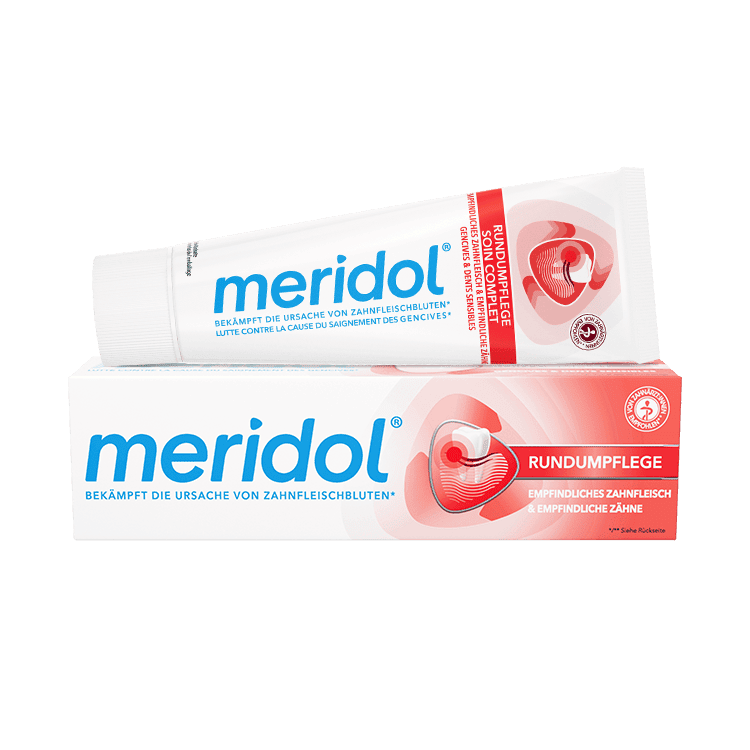 Kümmern Sie sich um Ihre empfindlichen Zähne und Ihr empfindliches Zahnfleisch mit der meridol Rundumpflege Zahnpasta. Diese Zahnfleisch Zahnpasta wurde speziell entwickelt, um die Ursache* von Zahnfleischbluten und Entzündungen zu bekämpfen und zu behandeln. Die Zahnpasta ist klinisch getestet, um empfindliches Zahnfleisch zu beruhigen und empfindliche Zähne zu schützen, während ihre effektive, duale Wirkformel eine langanhaltende antibakterielle Wirkung* bietet.